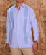 Lino Flame ML con cuello Color: Blanco Alforzas al tono Bordado punto de cruz cafe