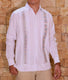 Lino FlameML cuello mao Color: Blanco Alforzas al tono Bordado punto de cruz matizado en mangas y cuello